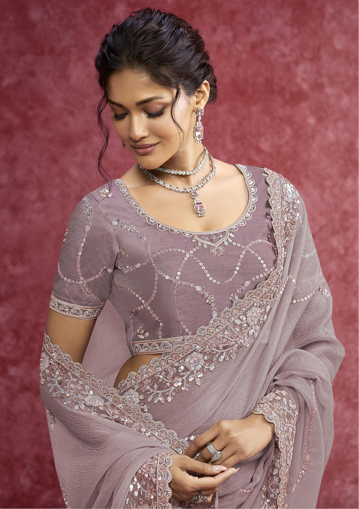 Elevate your traditional wardrobe with this Designer Banarasi Purple Saree, exquisitely crafted with intricate sequin and resham thread work. The rich purple hue complements the detailed embroidery, offering a sophisticated and timeless appeal. Perfect for special occasions, this saree blends classic artistry with contemporary elegance, ensuring a graceful silhouette and lasting impression. Complete with a matching blouse, it provides seamless style and comfort for an expert touch to your ethnic ensemble.