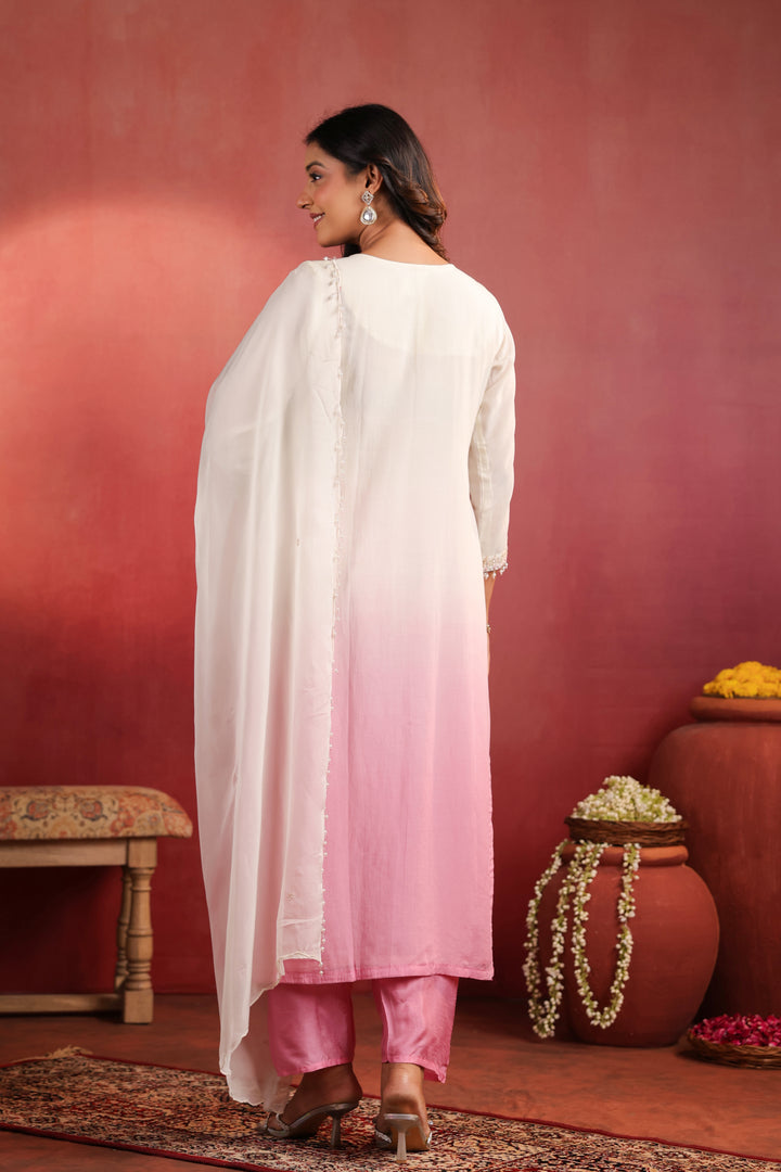 NOOR WHITE PINK SHADED KURTI PANT SET