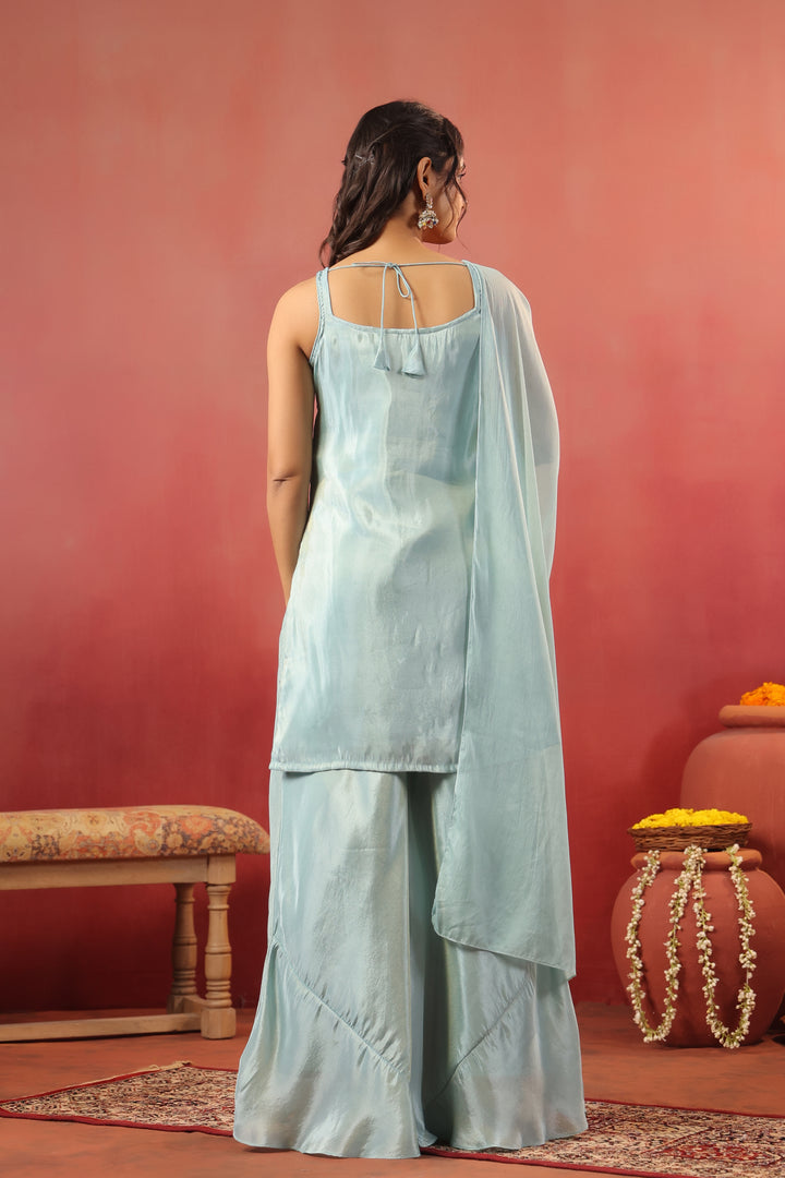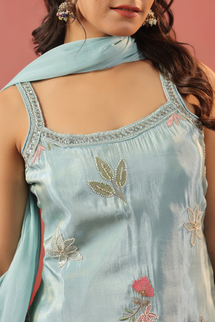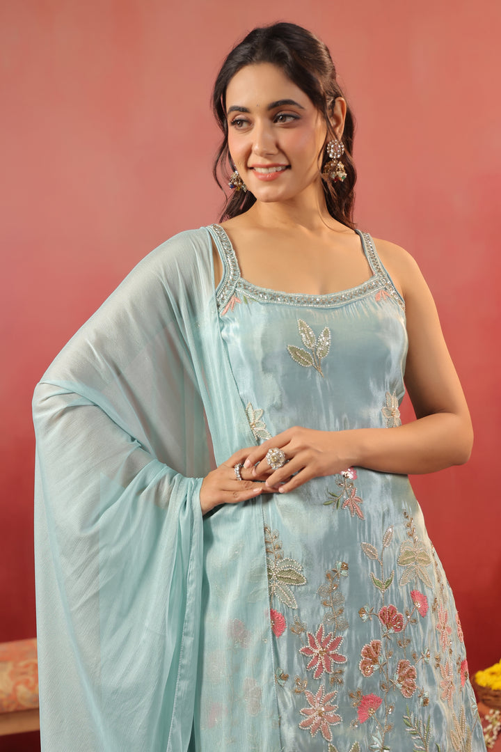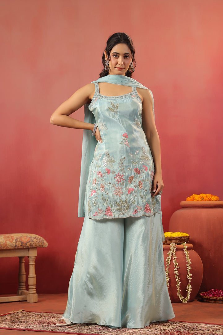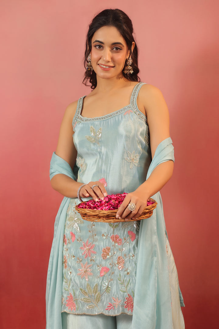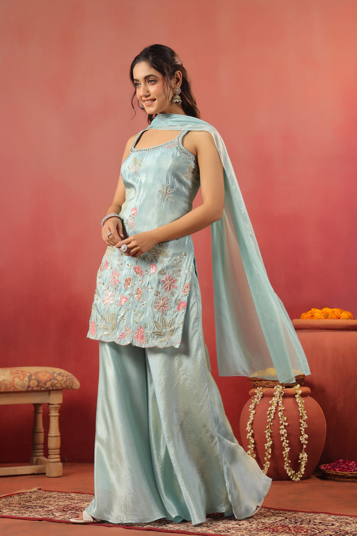 PURE TISSUE FABRIC KURTA PLAZZO & DUPATTA